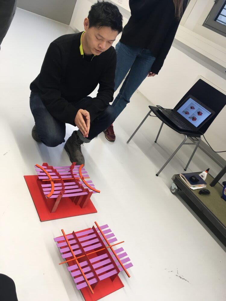 Active-bending is an effi­ci­ent construc­tion tech­ni­que for temporary, free-form struc­tures which has been used since anti­quity. This method exploits the elastic bending of thin elements in order to create curved forms. The semi­nar was based on a rese­arch deve­lo­ped within the univer­sity, propo­sing an al­ter­na­tive active-bending system in which the stif­fen­er­s are embed­ded in the buil­ding compon­ents ­them­sel­ves by intro­du­cing geome­try cons­traints. Thus, an inde­pen­dent rela­tion between the maxi­mum ­cur­vat­ure and the stiff­ness is achie­ved and the resul­ting system faci­li­ta­tes the erec­tion and reusa­bi­lity of temporary structures.